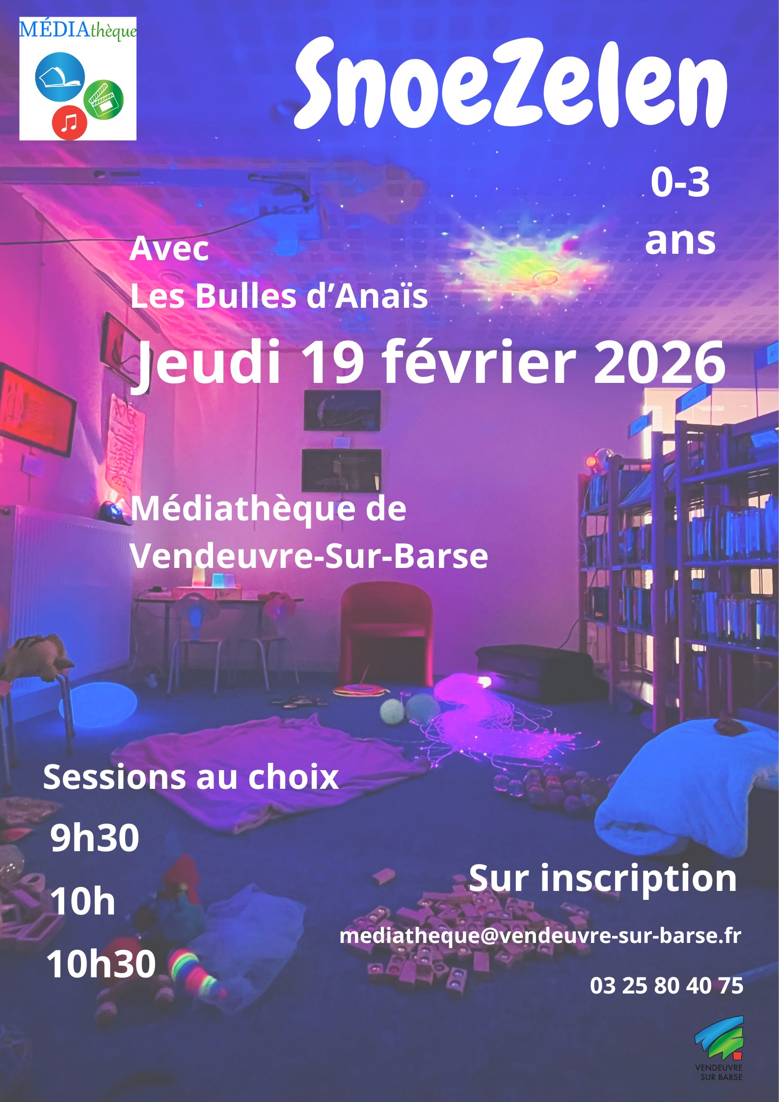 Snoezelen avec les bulles d'Anaïs, le jeudi 19 février 2026 pour les enfants de 0 à 3 ans.